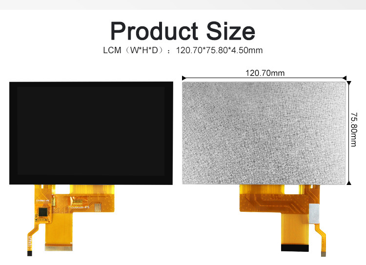 De nieuwe gepubliceerde IPS Vertoning van TFT LCD voor commercieel en industrieel gebruik. Ons TFT LCD heeft diagonaal een 5 duim. De resolutie van onze tft lcd is 800 * 480. De normale helderheid is 300 neten onder de test van laboratorium.
